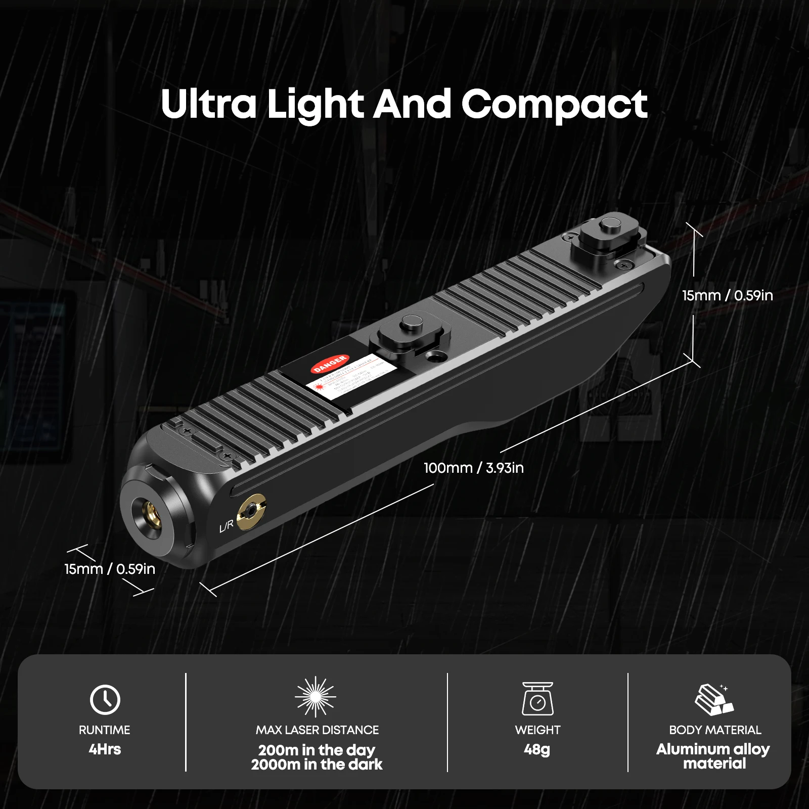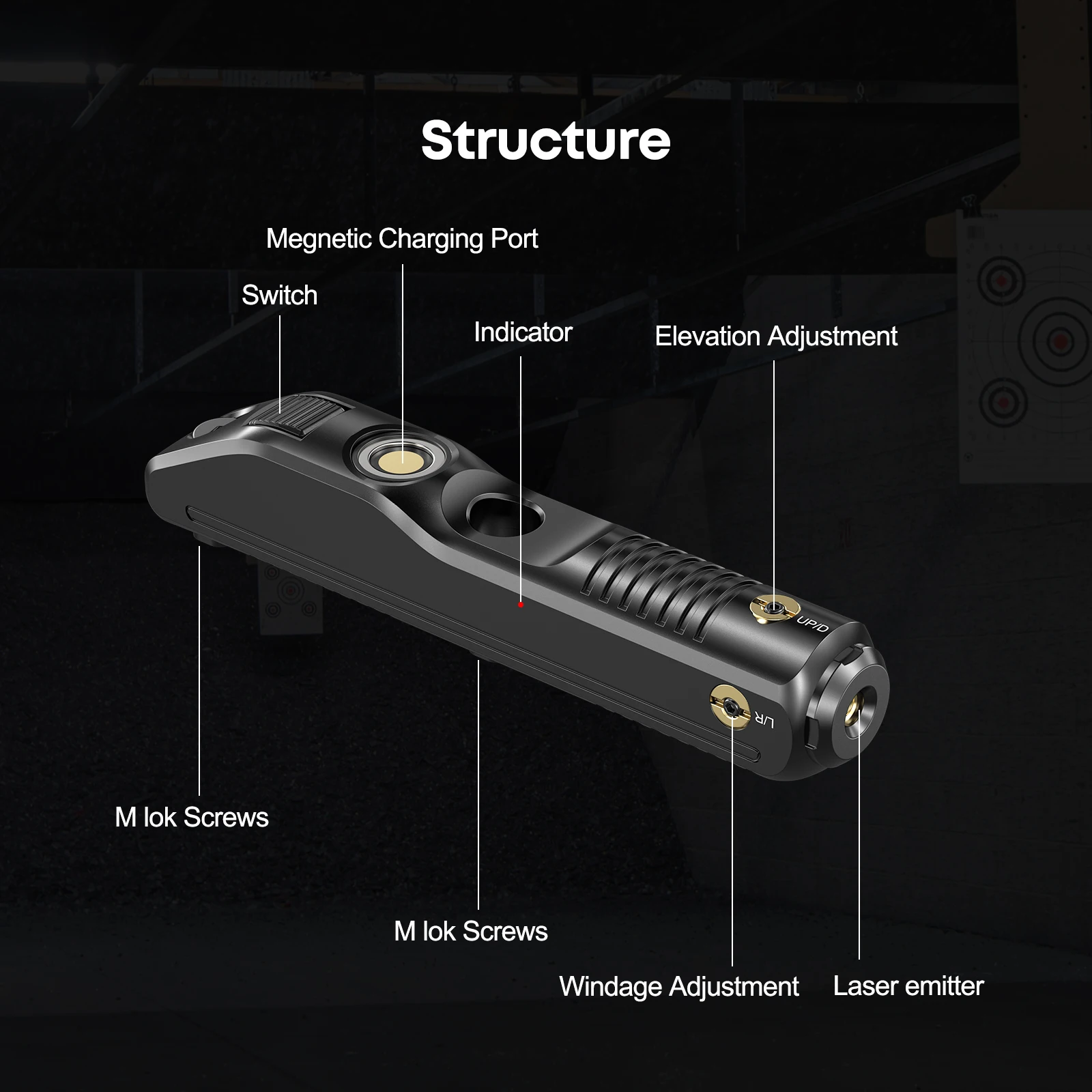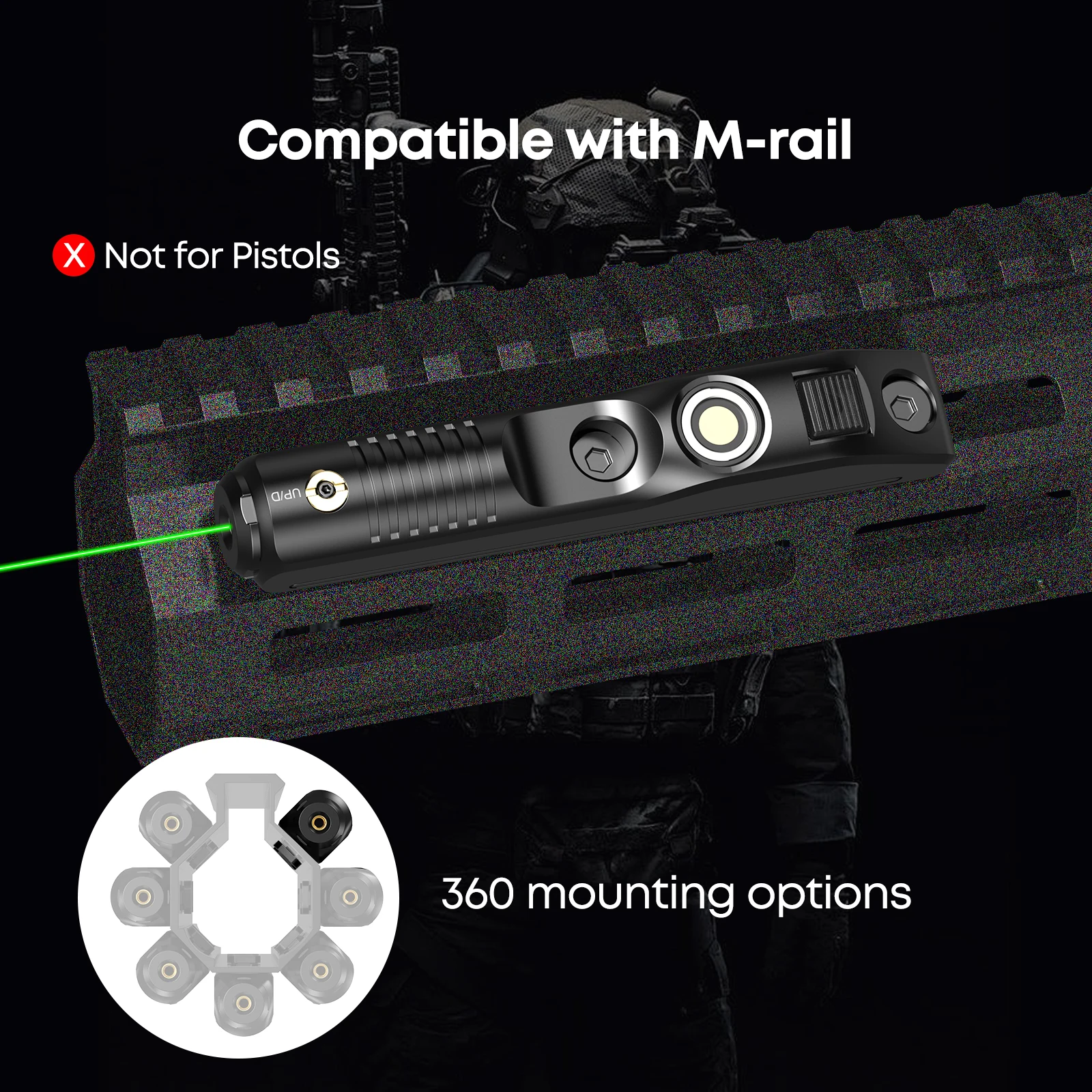 Green Magnetic Charging Laser Sight f 2000m Range, with Windage/Elevation Adjustment.